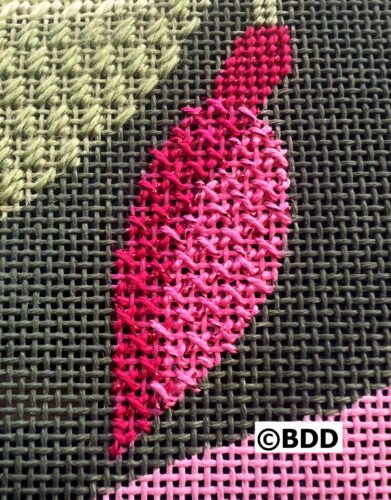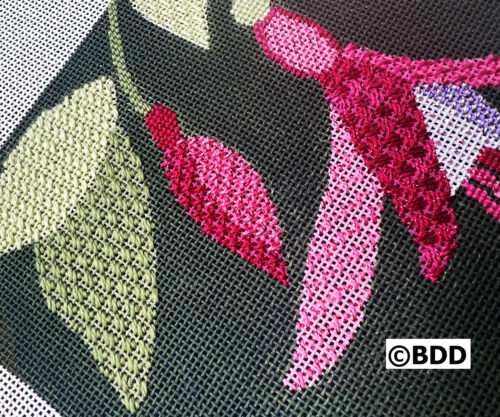 Woodland Fuschia – great stitches, new threads – canvas with thread kits will be ready to ship early January 2026!