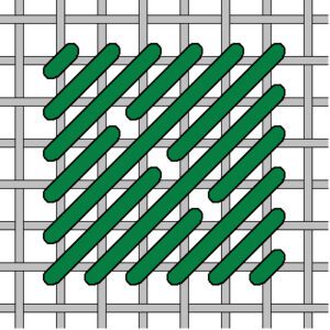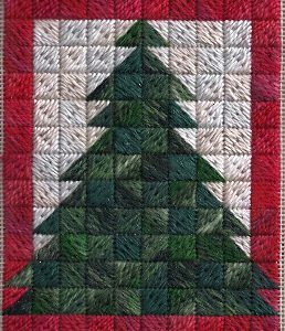 Inspired and grateful for Janet Perry, Nuts About Needlepoint, Scotch Stitch Needlepoint Christmas Tree Free Pattern for her stitchguide idea. Only one stitch used. See the diagram. Named “Scotch Pine”, Janet Perry used a Scotch variation named Genny’s Scotch in honor of Genny Morrow.